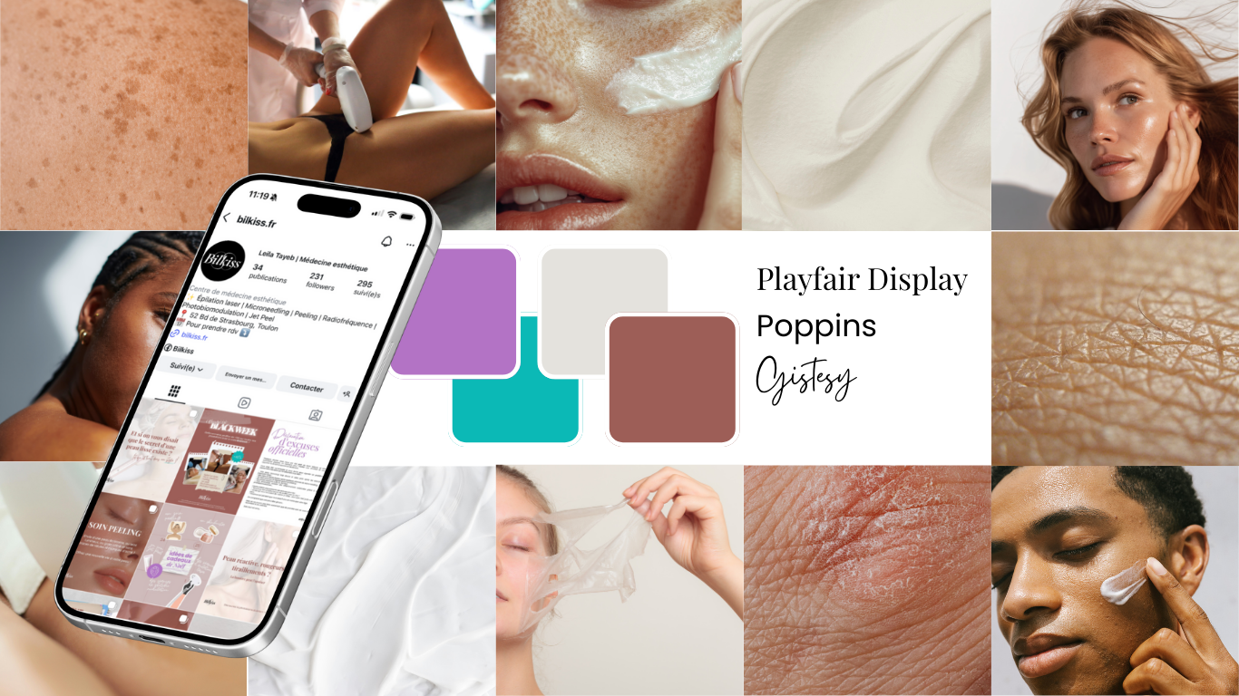 Playfair Display : pour les titres, typographie avec empattements qui évoque l’élégance, le luxe et la sophistication. Parfait pour un institut de médecine esthétique.